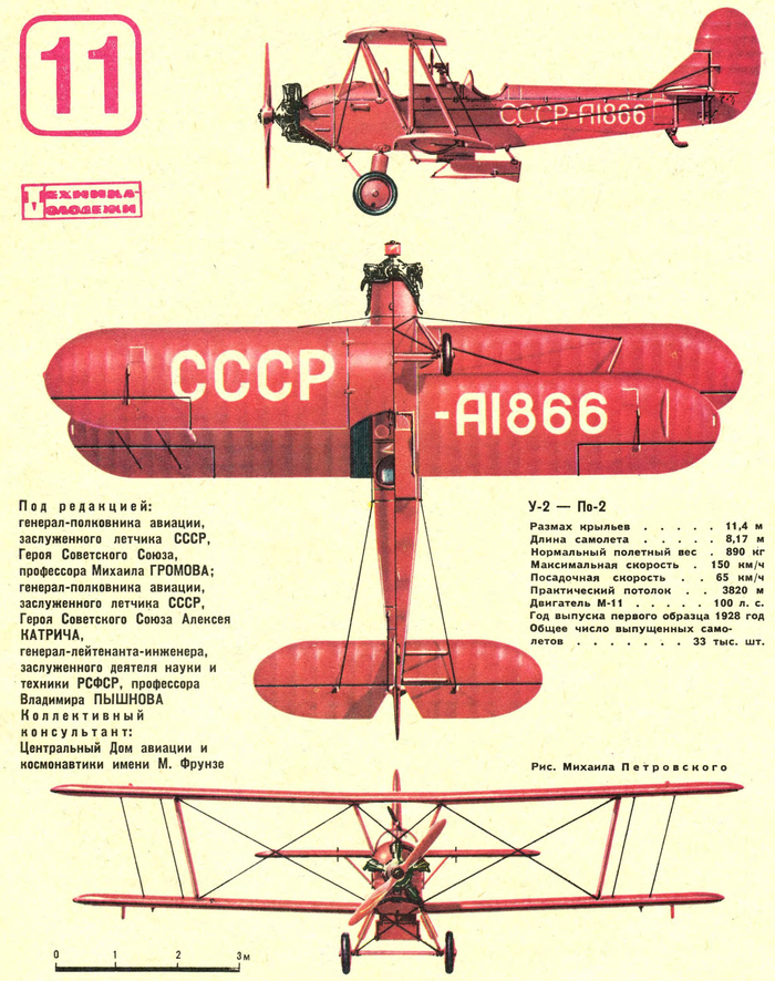 По схеме самолёт У-2 — одномоторный двухместный биплан расчалочной конструкции с мотором воздушного охлаждения М-11 мощностью 125 л. с.