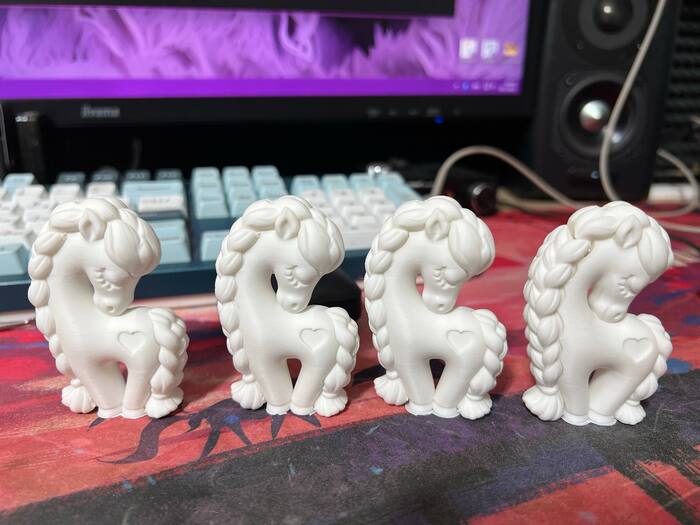 ✅ Сложные детали: Печатал тыквы с нависаниями — они пропечатались отлично, без выпадения слоёв. Также делал мини-коней с соплом 0,2 мм — детализация получилась четкая, пластик хорошо держал форму даже на маленьком сопле.