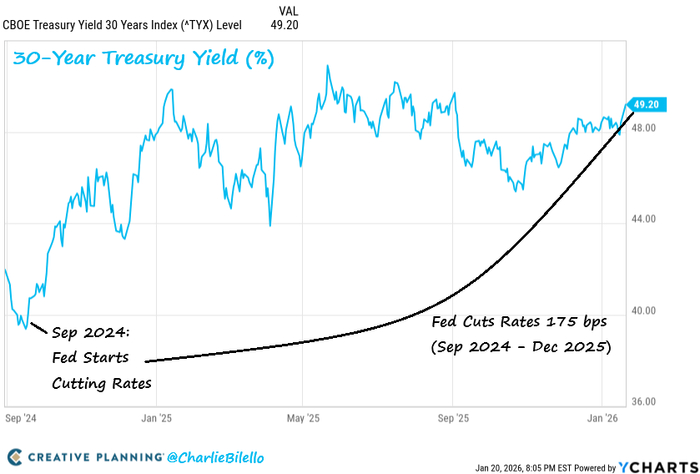 🐌 Финансисты делятся наблюдением: ФРС начали снижение ставок в сентябре 2024-го года, с доходностью 30-летних US Treasuries в 4%. Сейчас же эта доходность равняется 4,9%, несмотря на снижение ставки на 175 б.п. Так-то обычно наоборот должно быть: при снижении ключевой ставки доходности облигаций должны бы тоже снижаться… Выходит, не сильно-то верят рынки в способность США долгосрочно порешать проблему госдолга/инфляции.