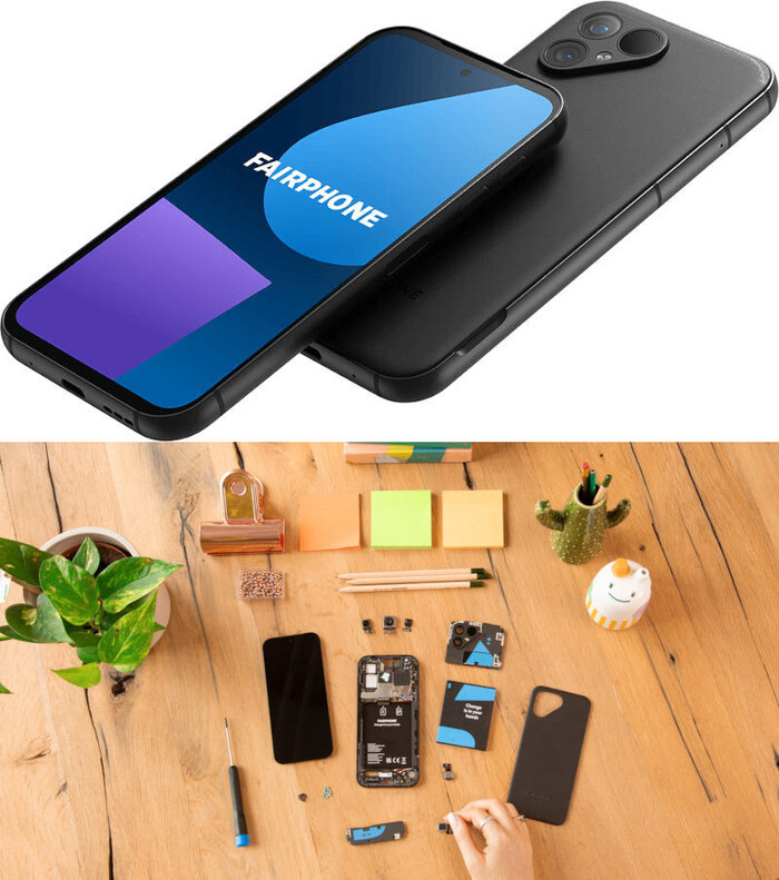 ▸[15] Смартфон Fairphone 5: 6,5" OLED @ 90 Гц, Qualcomm QCM6490, ОЗУ 8 Гб, ПЗУ 256 Гб, Android 13, модульная конструкция, можно без паяльника заменить батарейку, камеру, слот microSD и т.д. Цена 700 €.