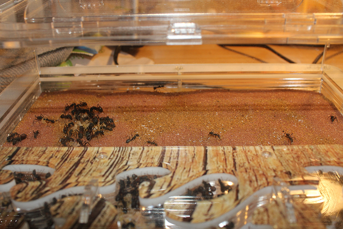 После переноса формикария в комнату, я заткнул выход на арену ваткой и начал уборку изрядно запачканной территории. Всех сонных рабочих, находившихся в этот момент снаружи гнезда, я отсадил в отдельную ёмкость, чтобы не мешали.