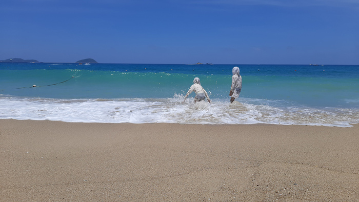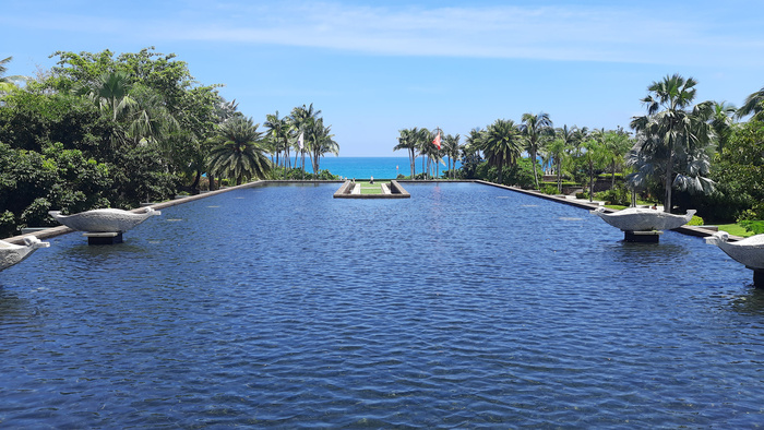 Наиболее известных бухт три. Это непосредственно сама Санья. Дальше на восток Дадунхай, и за ним Ялонг Бэй. Основная масса заезжает на первые две. Получается Анапа. Зато, как все пишут, там можно дёшево пожрать, ибо город и общепит на каждом углу. А вот Ялонг Бэй – он благостный и для уважаемых людей. Отели дороже, еда божественнее, пляж благостнее и белее. Плюс, на Санье, как говорят, водится песчаная блоха, которая бессовестно кусает мокрые попки отечественных туристов. А вот в Ялонге блохе запретили приходить, посему влажные попки в полной безопасности.