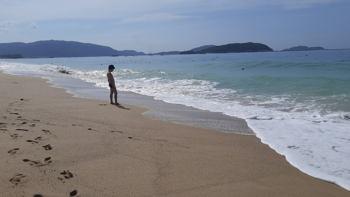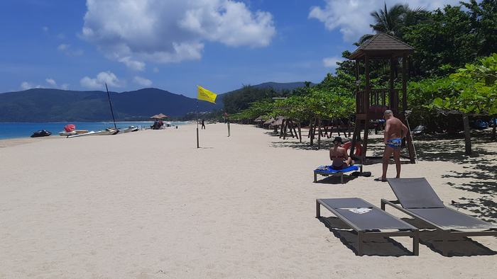 На пляже мигрируют взад-назад торговцы, которые предлагают фрукты, украшения, пивасик. Местный Tsingtao (холодный) предлагают за 20 юаней. Торгуются до 15. Спасатели от отеля отдают за 9. 9! Юаней! На пляже. Холодный. 0,5. 100 рублей. Коммунизм!