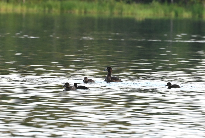 Буквально ещё вчера появившиеся на свет птенцы хохлатой чернети, совсем не нуждаются в материнской опеке: они уже вполне умело добывают себе пищу и весьма ловко ныряют при приближении опасности.
