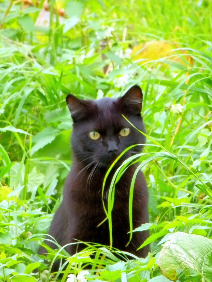 И, бонусом, Случайного Весеннего Котика вам в ленту… С глазами цвета хризолита и на фоне майской зелени.