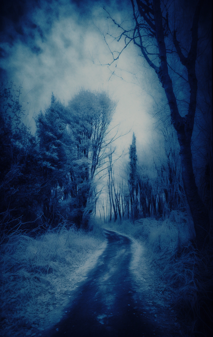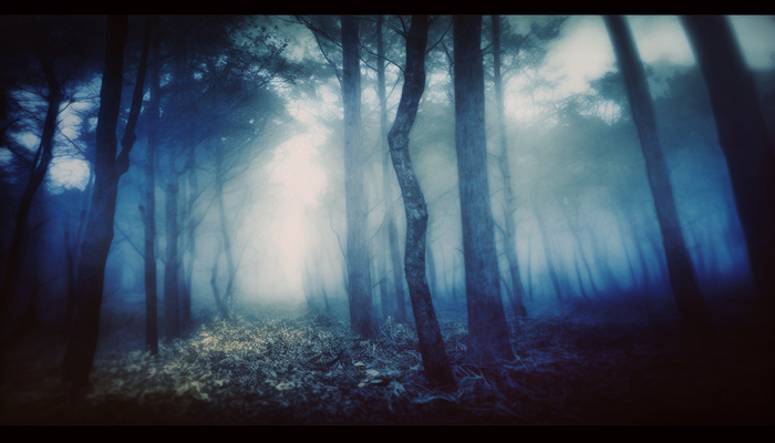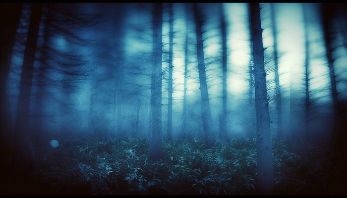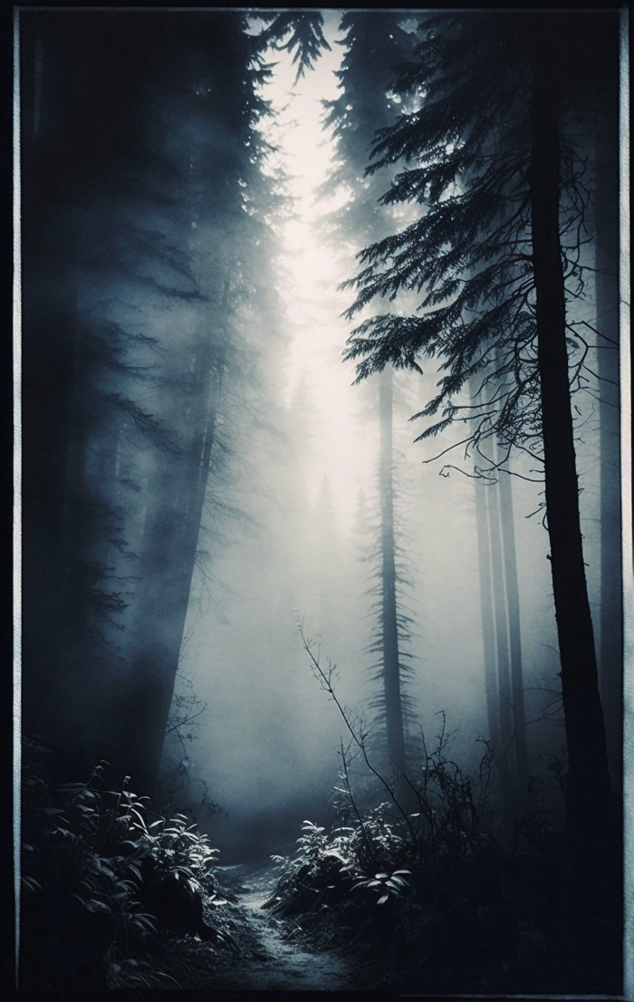 [моё] Midjourney Нейронные сети Арты нейросетей Цианотипия Пейзаж Лес Мрачное Длиннопост