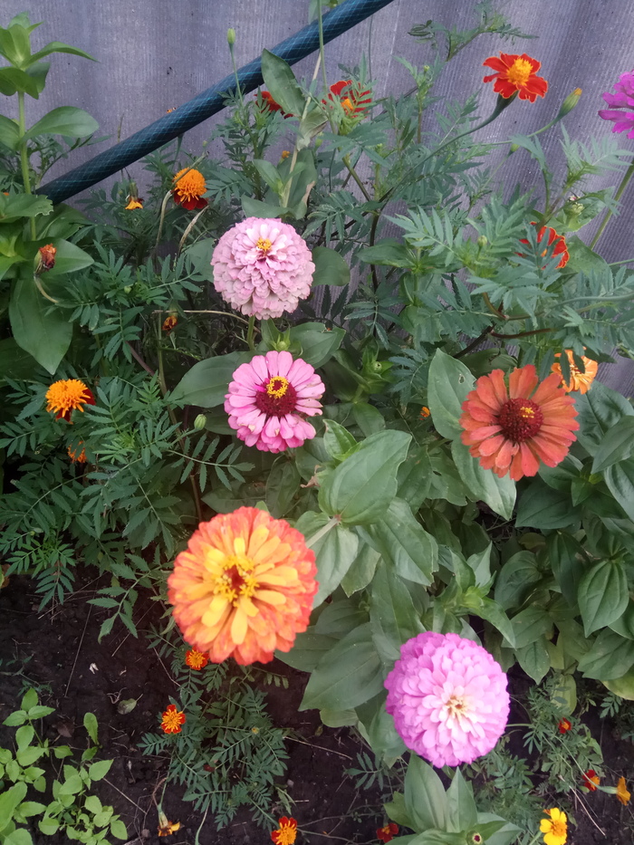 Смесь цинний Калифорнийские великаны, цветут в основном оранжевым цветом, яркие и сочные краски!
