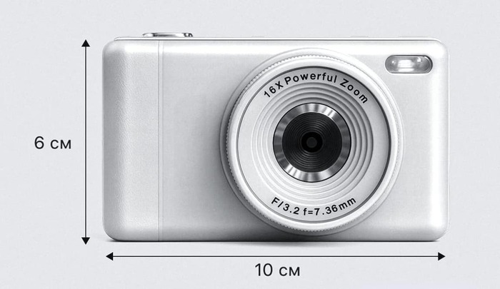 Характеристики: 16 МП, 8-кратный цифровой зум, экран 2,7 дюйма, запись видео в HD.