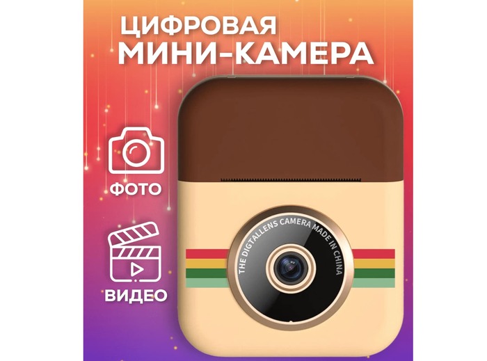 1. Компактный мини фотоаппарат мгновенной печати (детский, с бумагой и картой памяти 32 Гб)