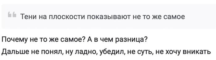 Уважаю людей за размышления и тем более опыты. Но вместо записи видео, могли бы и книжки почитать, этой теме уже тысячи лет… Впрочем, так ответил на вычисления выше мой собеседник: