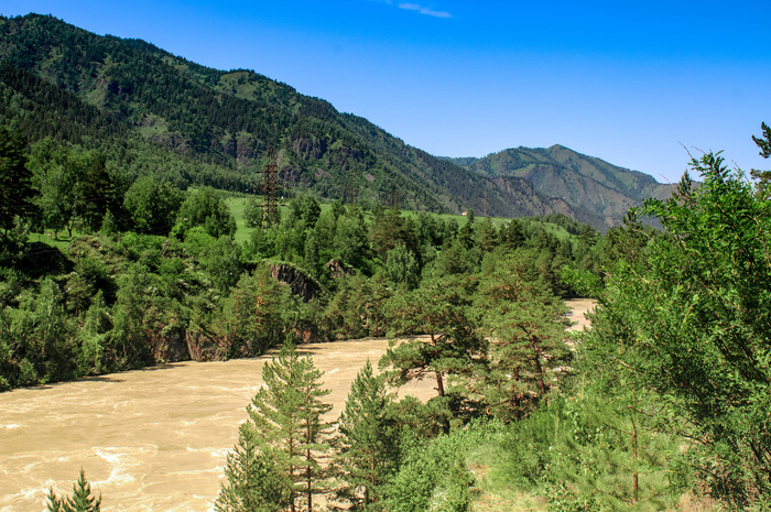 Вдалеке можно увидеть остатки моста - привет от строителей Катунской ГЭС. Она так и не была построена.