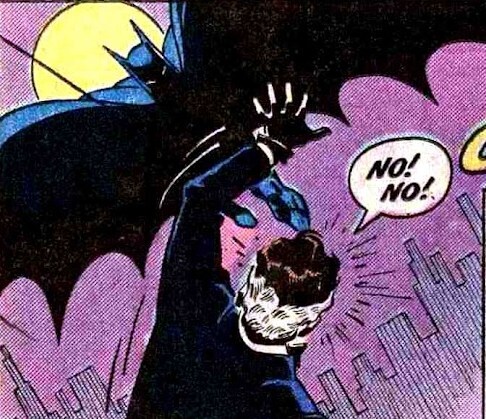 А далее наступает типичный для комиксов конфликт на пустом месте. “Бэтмэн, ах ты падла, все капсулы с химикатом разбились из-за тебя! – Отлично! – Хренично! Ты обрёк мою дочь на смерть! – Не, я ей жизнь спас, но некогда объяснять, просто я прав потому что я Бэтмэн, а щас мне нужно догнать недобросовестного наркоторговца, и... – Э стоять мы не закончили! – Ннна по хлебалу, ты мне потом ещё спасибо скажешь”. Нокаутировав Кирка, Бэтмэн отправляется в погоню за врачом, который настоял на “приобретении” химиката, и который на самом деле стоит за контрабандой. Мэн-Бэт вскоре Тёмного Рыцаря догоняет, но после недолгой потасовки соглашается помочь скрутить барыгу. Барыгу находят и сдают полиции. А Джеймс Гордон такой “Знаешь, так-то химикаты могли быть и не смертельными, в принципе, они могли даже нормально работать. А может и нет, я хз на самом деле, мы же их толком не проверили, ты же все ампулы раскурочил”. И подслушивавший всё это Мэн-Бэт клянётся, что если из-за решения Бэтмэна его дочь погибнет, он не успокоится, пока не отомстит лютейшей местью.