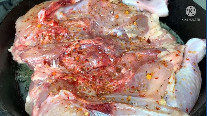 1. Цыпленка помыть, срезать весь жир и отрезать гузку. Разрезать на 4 части.