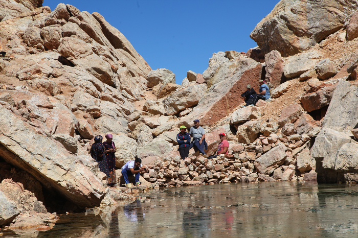 Самые опытные выходят на штурм около трех утра и встречают рассвет на маршруте. Завораживающее зрелище. К 7−9 часам утра (зависит от скорости подъема) паломники добираются до источника Зем-Зем — так его назвали по аналогии со знаменитым колодцем в Мекке. Кристально чистая вода, покрытая тонкой корочкой льда, который почти не тает даже днем, считается священной и исцеляющей недуги. Большинство паломников набирают воду в принесенные с собой емкости и забирают домой. На дне водоема блестят монеты.
