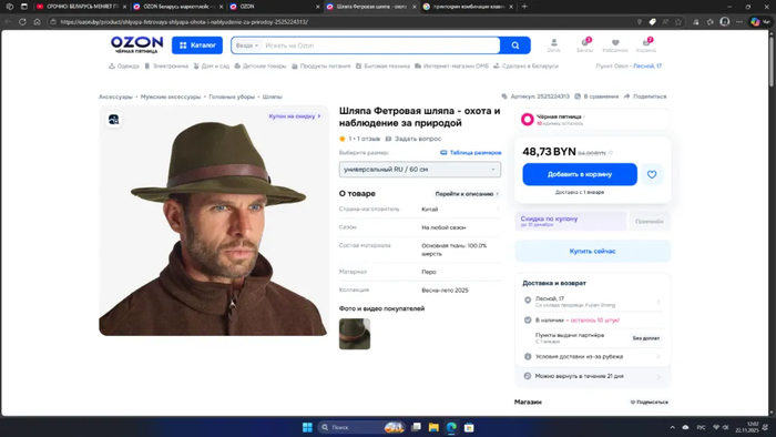 Заказал на озоне охотничью шляпу из шерсти, доставка была 2 месяца а она и на ладонь то с трудом налезла.