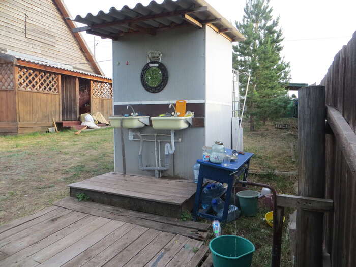 Далее, по подсказкам интернетов, пытались найти жилье в Фыргале, чтобы оттуда совершать вылазки по Хакасии, но потерпели неудачу - все занято и расписано. Поэтому проехали в Жемчужный (на берегу озера Шира) и сняли дачу (800 с человека в сутки) - тишина, спокойствие, приготовить есть где, душ, баня, детская площадка (для деток 17 и 23 лет).