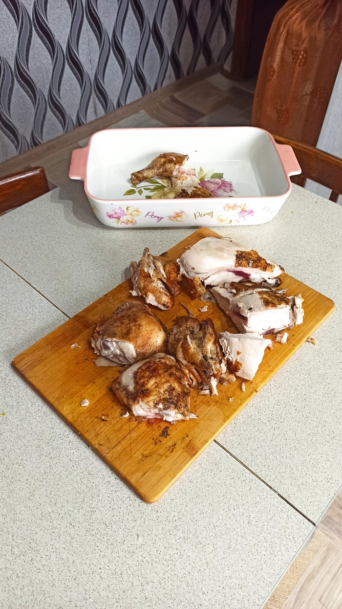 Курица - Примерно 1- 1.3 кг (любые части, у меня голени)