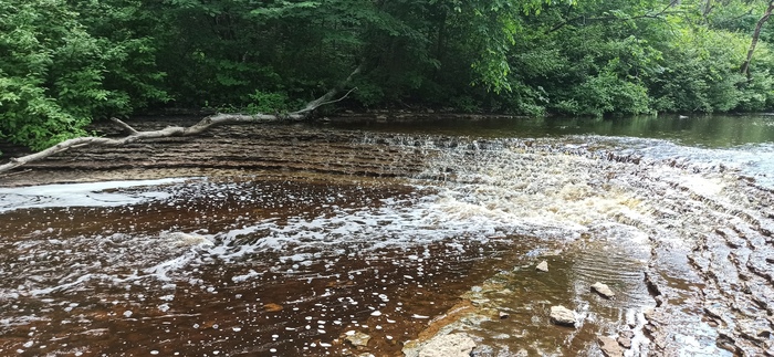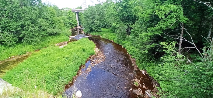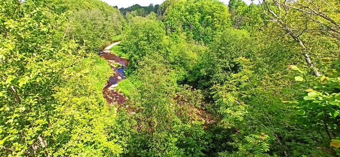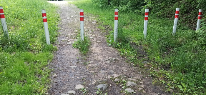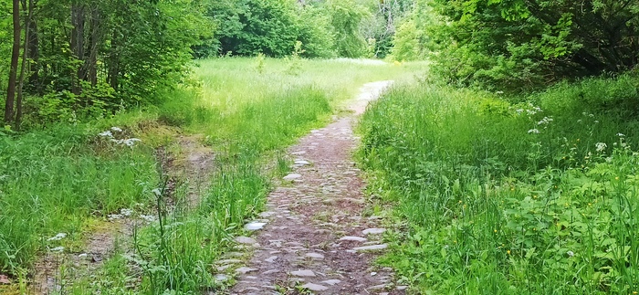 Недалеко от съезда с Мурманского шоссе тоже есть тропа к реке, но там резкий спуск по щебенке, которая скатывалась под ногами, поэтому с детьми не рискнули спускаться.