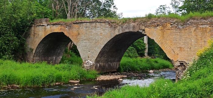 Начало маршрута от Троицкой церкви, по тропе до реки, через арочный мост и далее непосредственно вдоль реки.