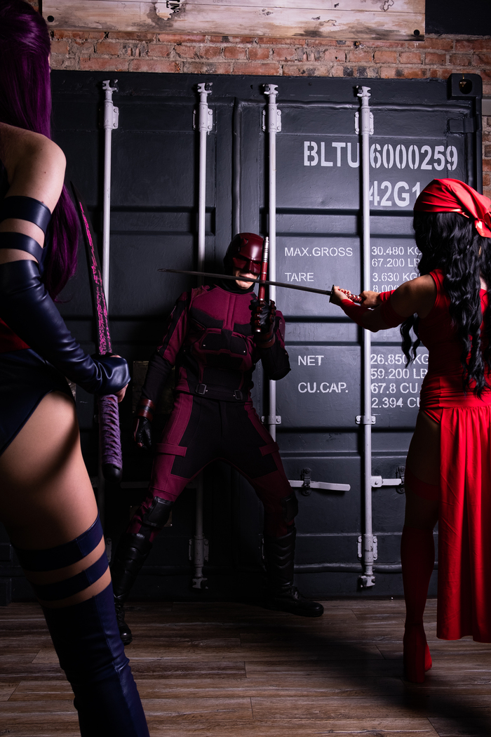 Любовная линия с Электрой развивается только благодаря тому, что этого хотят авторы. Вот как это выглядит в кино: первая встреча → любовь до гроба. Позже это перерастает и в слив линии мести девушки. Не всё хорошо и у Меченого. В общем и целом он как будто бы и не особо нужен в этой истории. Однако, несмотря на то что он не является главгадом, именно он наносит Мёрдоку наибольшее количество урона. Проблема в том, что наёмник здорово оттеняет Кингпина, переводя фокус на себя. Оттого зрителю и кажется, что после победы над ним фильм должен закончиться. Но это не так.