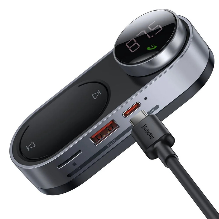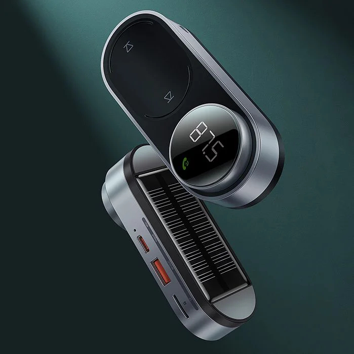 Многофункциональный FM-трансмиттер с уникальной системой солнечной зарядки и встроенным аккумулятором 700 мАч. Поддерживает Bluetooth 5.0, имеет слоты для USB и micro SD карт, а также AUX-вход. Рабочий диапазон частот 87,5-99,9 МГц обеспечивает качественную передачу звука на автомагнитолу.