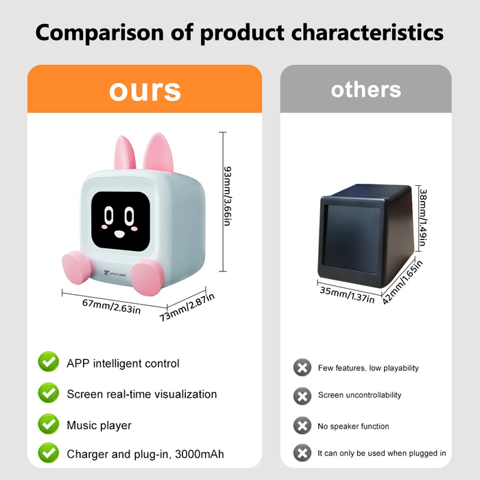 Компактный настольный гаджет, сочетающий яркий дизайн с современными возможностями. Устройство поддерживает воспроизведение музыки через Bluetooth и Wi-Fi, оснащено HD стереодинамиком для качественного звука. Позволяет загружать и отображать GIF-изображения или конвертировать обычные фотографий в формат галереи.