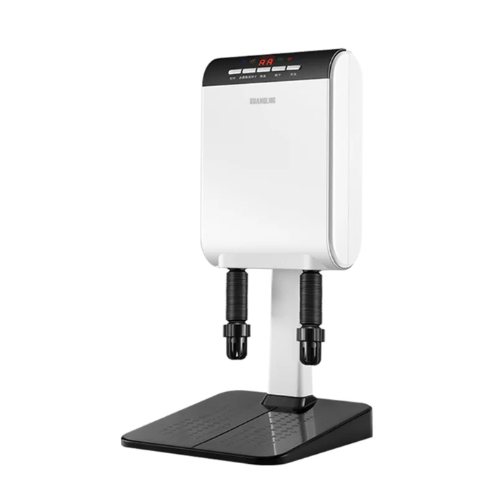 Мощная сушилка для обуви на 190 Вт с функциями дезодорации и стерилизации. Размеры устройства 48×28×19 см. Система включает озоновую дезинфекцию и анионную стерилизацию, что обеспечивает комплексную обработку обуви.