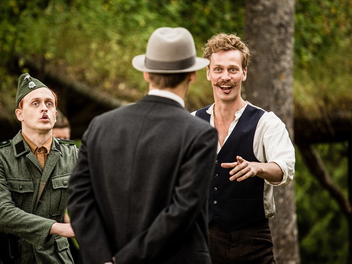 Далее мы знакомимся с главными героями. Паунвере и окрестности, 1942 год, Эстония под немецкой оккупацией, что, впрочем, не сильно влияет на провинциальную жизнь хуторян. Читавший книги или смотревший предыдущие фильмы с ужасом узнает, что по мнению сценаристов Йозеп Тоотс сгинул в сибирских лагерях (я сначала ужаснулся, но в целом характер Тоотса мог привести его к такой судьбе) – напомню, что Эстония вошла в состав СССР в 1940 году, буквально перед самой Войной. Тээле по-прежнему хозяйка хутора Райя (да, это всё та же самая актриса Рийна Хейн из оригинальной трилогии, это прямо восторг), живет с взрослым сыном Оскаром. Оскар – достойный потомок отца, такие же хулиганские проказы, но и твердая решимость следовать задуманному. Тут же в Паунвере семейство Кийров. Старый Кийр (да, Маргус Лепа – тоже актер из трилогии) вступил в ряды нацистов и ведет пропагандистскую передачу на местном радио – опять же ну очень ожидаемо. Сын Кийра по имени Фриц служит у фашистов то ли секретарем, то ли телефонистом, и является точной копией своего отца в детстве – такой же неуклюжий, недалекий и самодовольный.