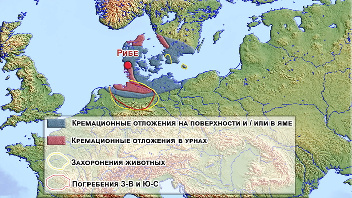 А вот кремационные отложения в ямах были широко распространены по всей Южной Скандинавии и северной части Центральной Европы и не могут быть связаны с конкретным регионом.