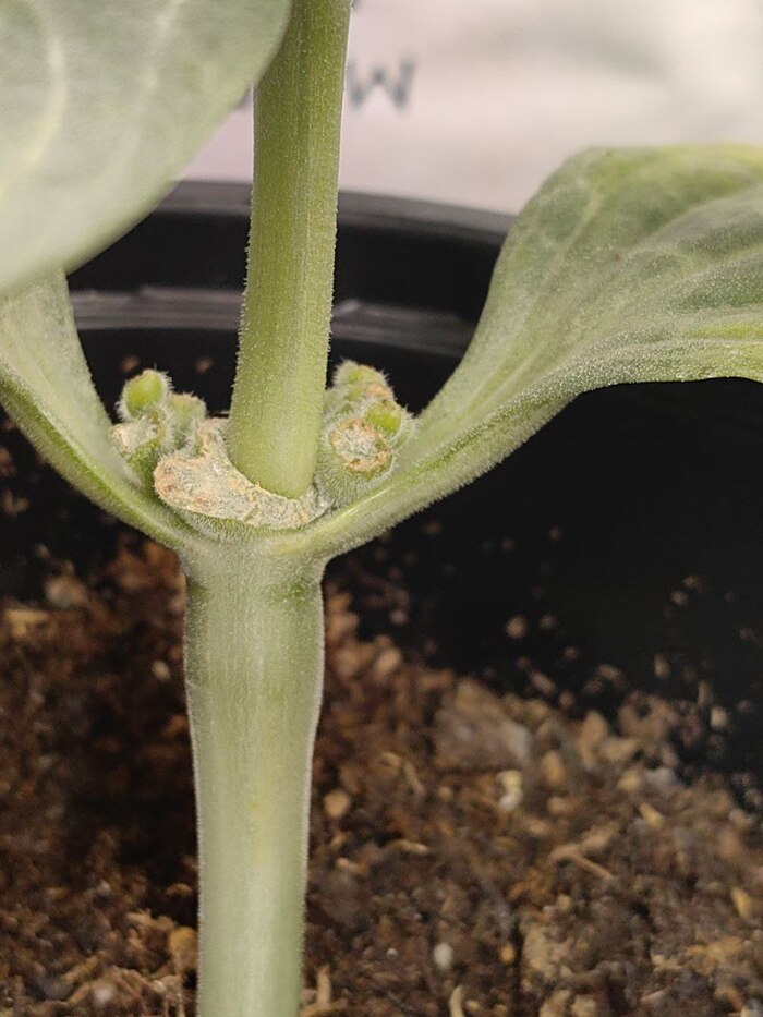 Вот всё, что от него осталось. Жалкая кочерыжка, которая бьётся в предсмертной агонии. Зачем? Ну, я подумал, что лучше убрать все больные листья и дать ему начать расти заново. Дело в том, что я практически уверен в том, что эти засохшие листья связаны с тем, что я его передержал в рассадном горшке: он его перерос и стал страдать от недостатка места и питания.