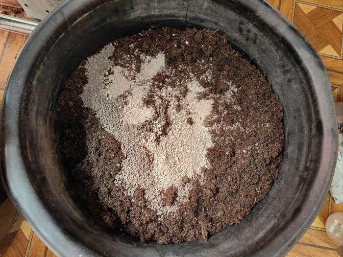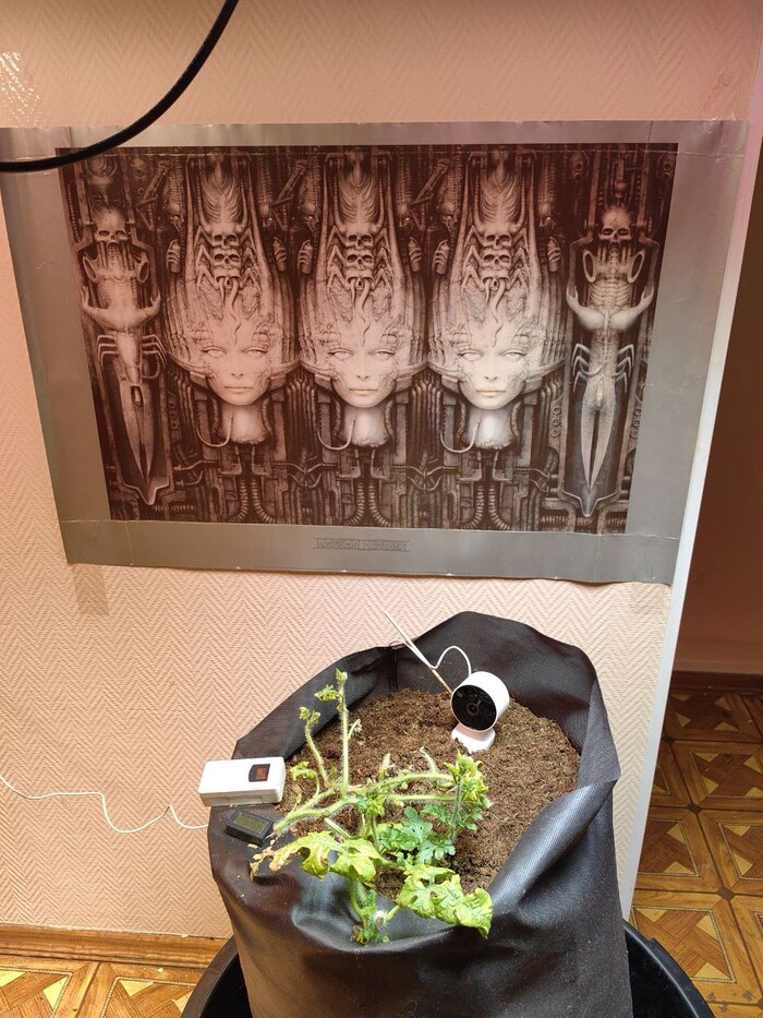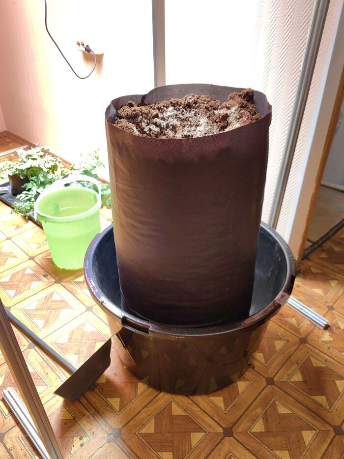 Сразу скажу, что ремонт я тут делать не буду, увы. Моя концепция проста: в один угол я сажаю арбуз, а под потолком развешиваю лампы, которые будут освещать все пространство помещения. Это примерно 9 квадратных метров, и в конечном итоге растение должно все поглотить. Но до этого момента еще очень далеко, ведь пока я искал офис и заселялся туда, арбузу стало совсем хреново. Но что поделать, надо его высаживать. Для этого я взял гроубэг (текстильный горшок) на 150 литров и заполнил его смесью торфа и удобрений.