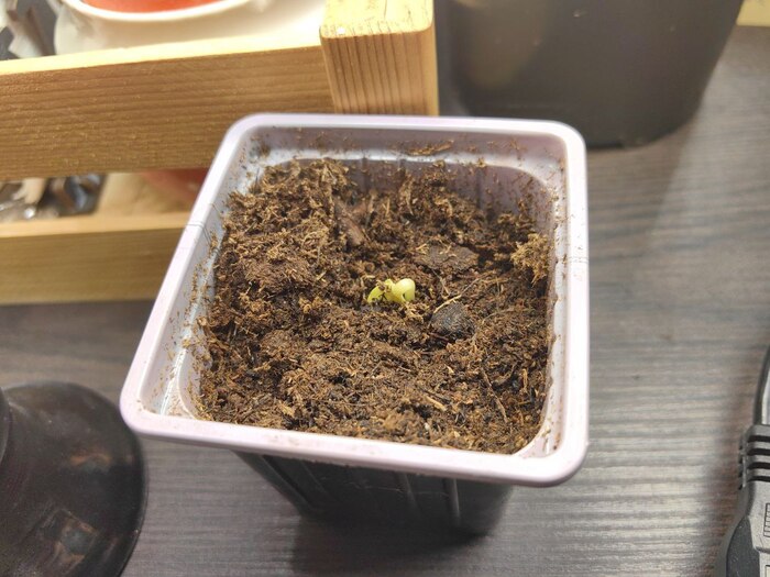Так вот, как вы помните (или не помните), моей целью является вырастить арбуз, который достигнет массы в 50 кг до 1 июня 2026 года. Расти он должен в помещении и под искусственным светом. Все начинается с семечки, которую я посеял, и она благополучно взошла.