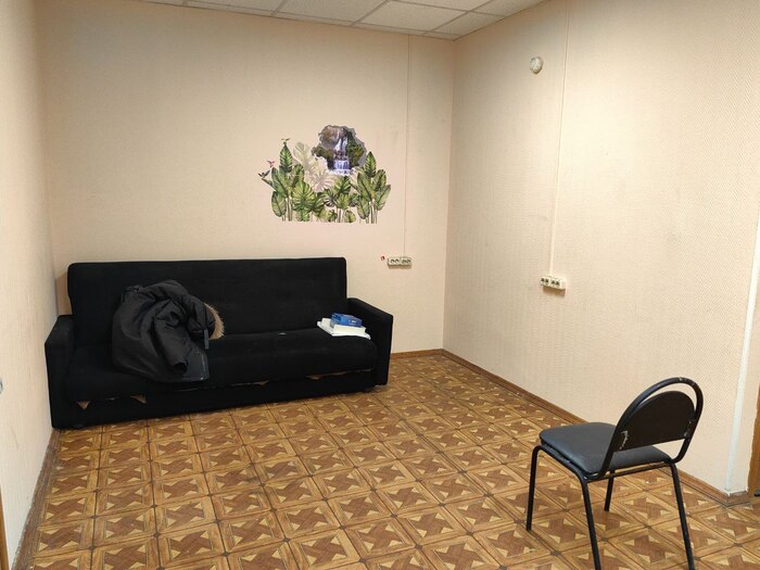 А я всё искал и искал. Но в один момент я смог найти место, которое подходило под мой запрос. Быстро договорился и стал первым в мире человеком, который снял офис для выращивания арбуза. Комната с чёрным диваном — отлично!