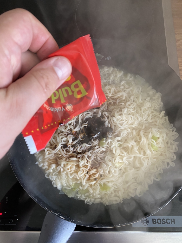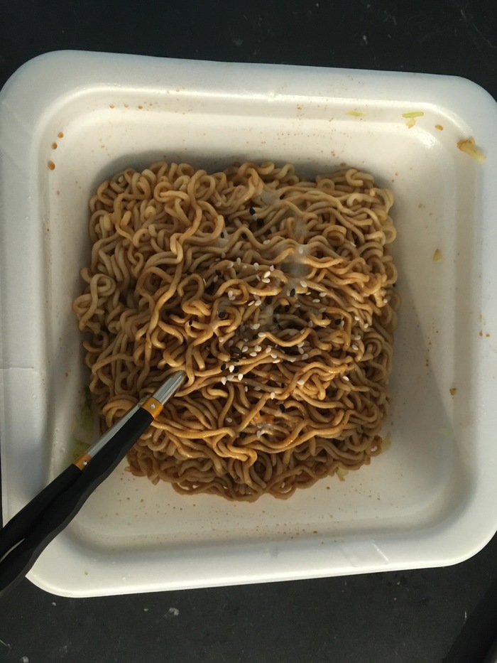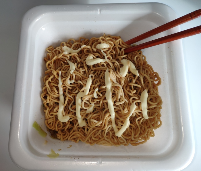 Вкус соуса очень деликатный, обволакивающий и терпкий. Если не знать, что ешь лапшу быстрого приготовления, можно подумать, что это блюдо из какой нибудь кафешки паназиатской кухни. Просто классическая Якисоба. Капуста хрустит как свежая, фурикакэ придает «морской» привкус, в общем баланс идеальный.