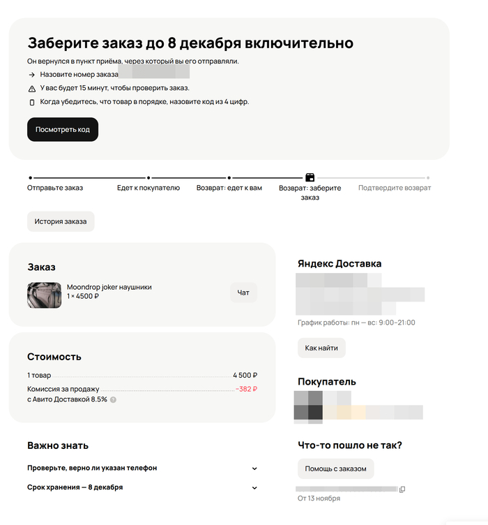 Продал через авито свои наушники (полноразмерные moondrop joker). Авито доставка через яндекс. Купил человек с отзывами, сплошные пятерки. Ждал я неделю, посылку он не забрал, сначала не отвечал - потом написал что были проблемы и не мог ответить.