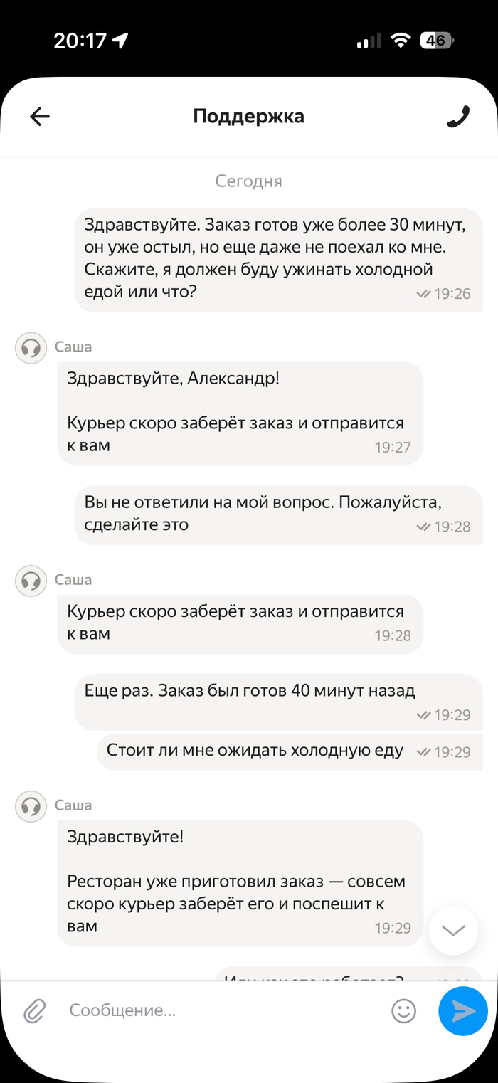 Я сказал нет, не хочу чтобы кто то ел мой заказ в Питере.