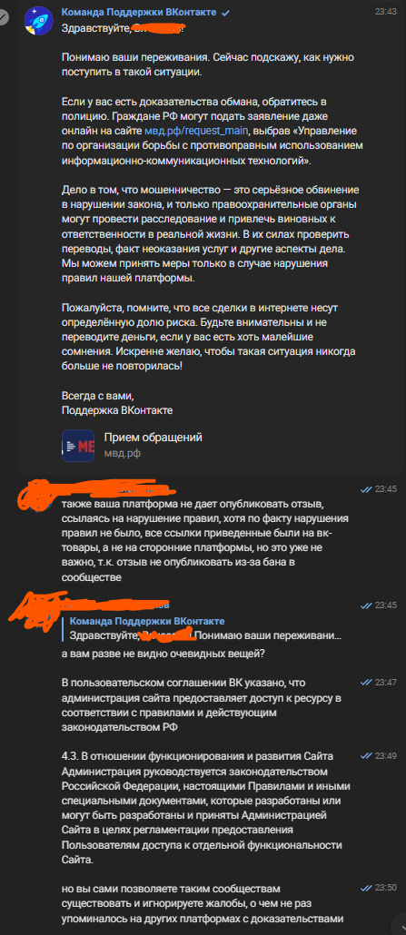 Также, т.к. видел комментарии в посту-родителю про поддержку вк, то она никак не реагирует на происходящее
