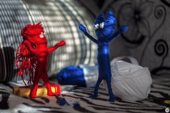 Меня зовут Настя, а это мои Ярни. Есть потрясающая игра, называется Unravel, красивый платформер с интересным сюжетом, где игрок управляет одним из таких чубриков. Игра очень интересная, очень провоцируeт на приятные эмоции, все очень ярко и впечатляюще. И в какой-то момент я не могла не найти как же делать главных героев в реальности. И где-то год назад создала первого из них.