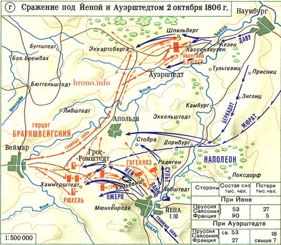 Сначала рассмотрим битву при Йене, а потом уже битву при Ауэрштедте, поскольку это две разных битвы.