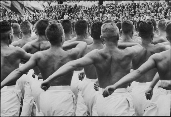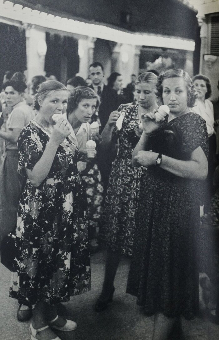 По результатам поездки Анри Картье-Брессон выпустил книгу под названием «Москвичи». Давайте посмотрим кадры из нее и те, что попали в LIFE. Возможно, вас тоже удивят некоторые нюансы. Например, почему молодые люди в форме на сельскохозяйственной выставке… держатся за руки.