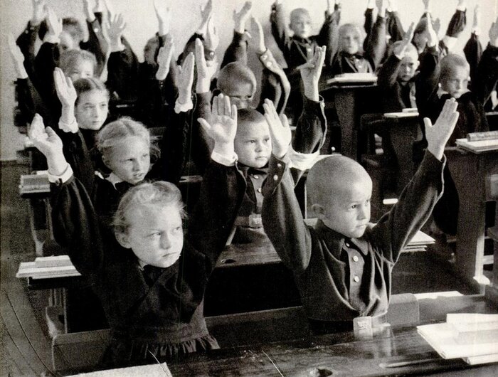 Московская школа. Нет, это не лес рук желающих пойти к доске отвечать. Учительница рассказывает о погоде и дети тянутся к облачкам.