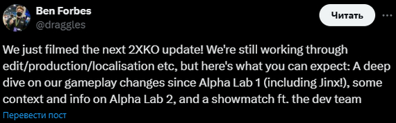 Несмотря на официальное объявление названия, разработка игры продолжается с активным участием сообщества файтеров, предоставляя ему больше возможностей для тестирования. В течение 2024 года будут доступны демо-версии 2XKO в различных частях мира, начиная с Evo Japan в апреле 2024 года. Также планируется запуск домашних тестов до конца года. Заинтересованные игроки могут зарегистрироваться для участия в домашнем тестировании на официальном сайте игры, где в течение года будут публиковаться дополнительные сведения о проекте.