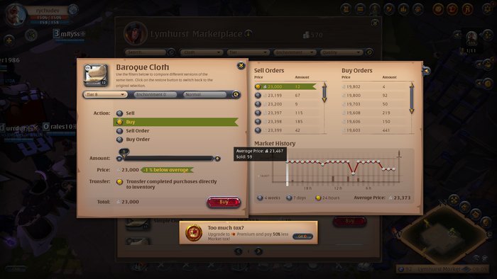 6. Торговля (перекуп) - аналогично! Не зная экономики, логистики в игре вы скорее уйдёте в минус, чем в плюс. Потратив уйму времени, сражаясь на рынке с матёрыми зубрами. Помните, опытных барыг в альбионе тысячи. Даже не пытайтесь найти какую-нибудь лазейку или "намахать" весь рынок. Если вдруг у вас и получится - это разовое явление.