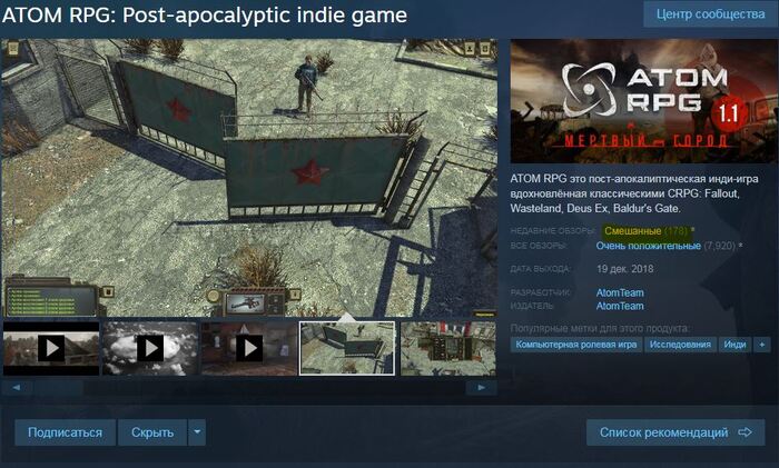 Вторую подборку стоит начать с редкого примера, когда фраза "Наш ответ" носит положительную коннотацию. Atom RPG, это наш ответ серии Fallout, первым частям. Если вы мечтали о путешествии по родным ретрофутуристичным просторам, разбавленных изучением старых деревенек, пошаговыми сражениями и отсылками на советскую киноклассику, вам сюда.