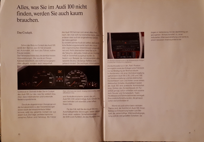 Внутри Audi 100 C3 тоже ломала стереотипы. Немцы отказались от показной роскоши - резных деревянных панелей, хромированных ручек, бархатных потолков. Вместо этого - эргономика.