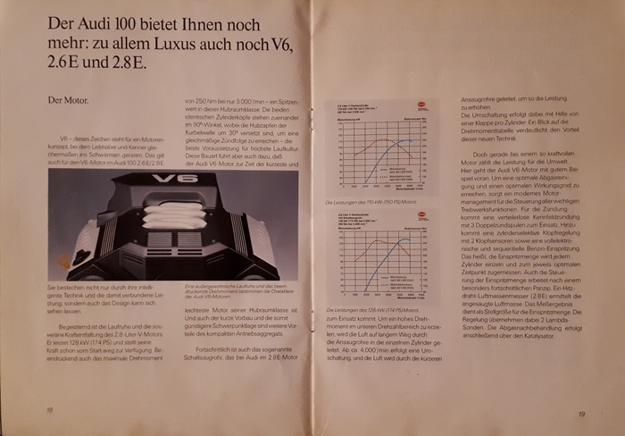 Под капотом Audi 100 C3 не было гоночных монстров. Линейка моторов начиналась с четырёхцилиндрового 1.8 на 90 л.с. и заканчивалась пятицилиндровым 2.2 на 136 л.с. Для машины такого класса это выглядело скромно. Mercedes предлагал шестёрки, BMW - тоже.