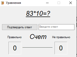 Когда мой ребенок начал учиться в школе я решил написать ему программу для того что бы он научился складывать, вычитать, умножать и делить в уме. Писал я ее если честно от скуки, когда на работе было свободное время, но моей программой заинтересовались родители подруги моей жены и им она понравилась, может кому то и здесь она придется по душе и поможет при занятиях с ребенком. Программы 2, одна для сложения и вычитания (числа не выше трехзначных, а результат не выходит в минус), вторая для умножения и деления (все ответы будут целыми числами, без дробей, числа не больше двухзначных). Счет ведется до 10 очков, в любой момент можно нажать F1 и посмотреть какой был пример, какой был ответ и какой ответ правильный. Ссылки на них https://yadi.sk/d/HLgIL-Jxyp0kIg - деление умножение, https://yadi.sk/d/TKrZ_BN0px7ZSw - сложение вычитание. Программы написаны для Windows скриптовым языком AutoIT.