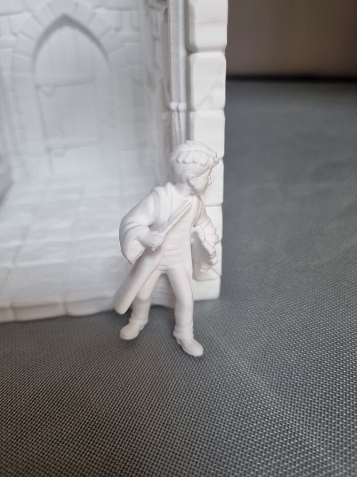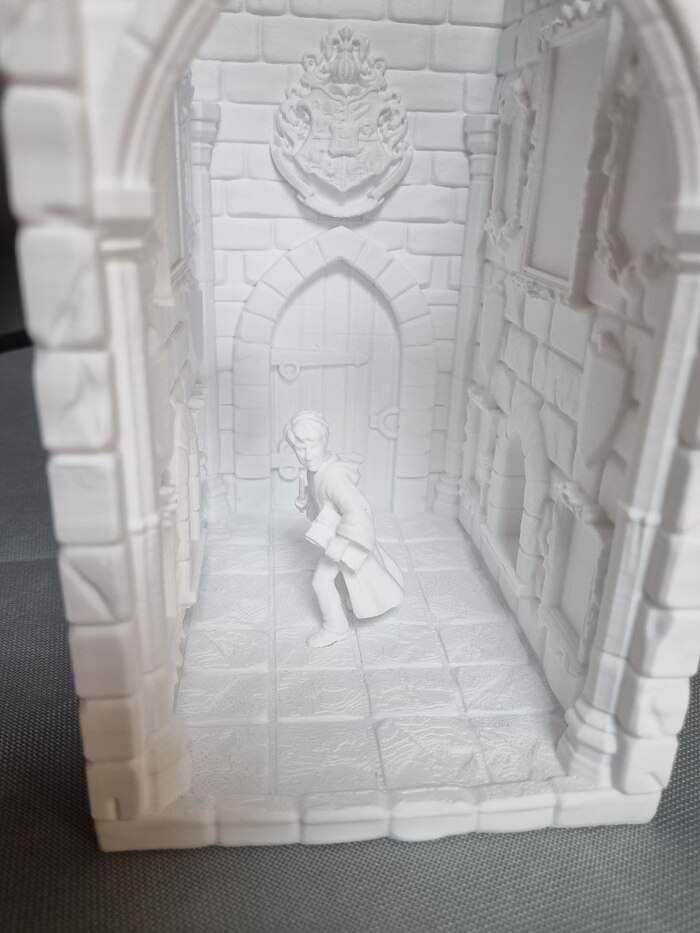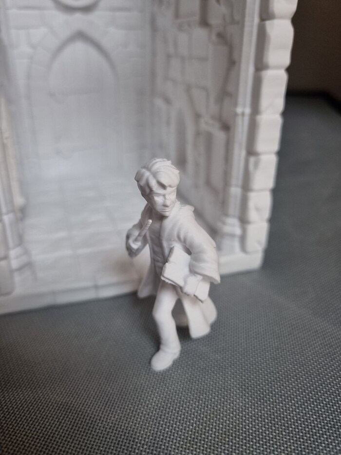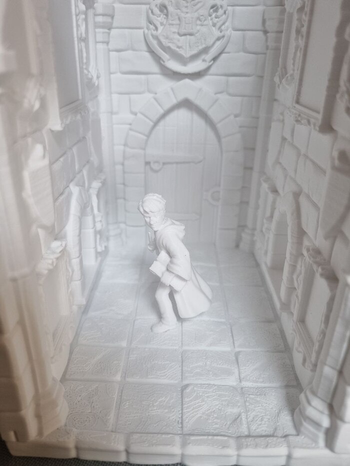 Сам мистер Поттер печатается отдельно от комнаты, где-то с час времени. Сопло так же 0,4. Но для таких моделей конечно лучше ставить 0,2 сопло, если вам не так уж важна скорость печати. Очки по канону у него были, и даже напечатались, но слетели вместе с отрыванием поддержки (поддержку убирал канц.ножом и кусачками). В принципе не критично, да и скорее всего я его перепечатаю 0,2 соплом, чтоб было красиво))).