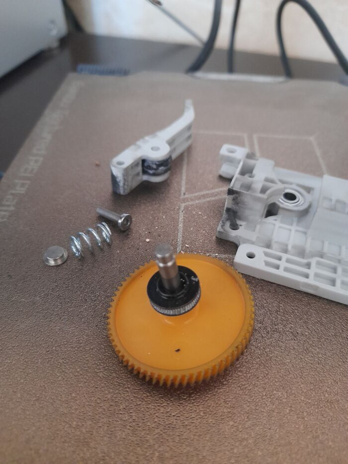 Фронт работ примерно понятен. Помимо устранения неисправности, неплохо было бы обслужить принтер. Решил золушку отмыть, проверить состояние механики. Экструдер полностью разобрал. Грязи, стружки в нем приличное количество.