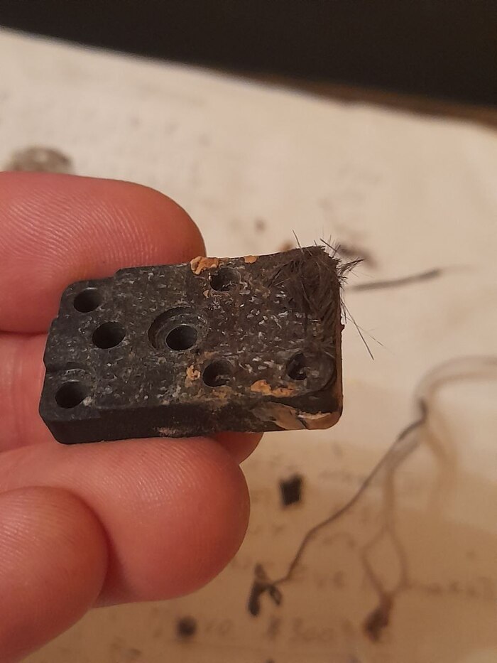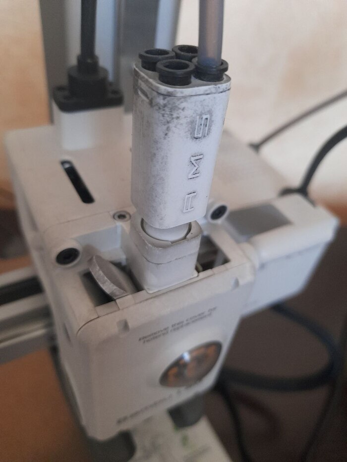 Хотенд. Неисправность обнаружена - это датчик температуры. Крепежный камень, резинка превратились в труху.